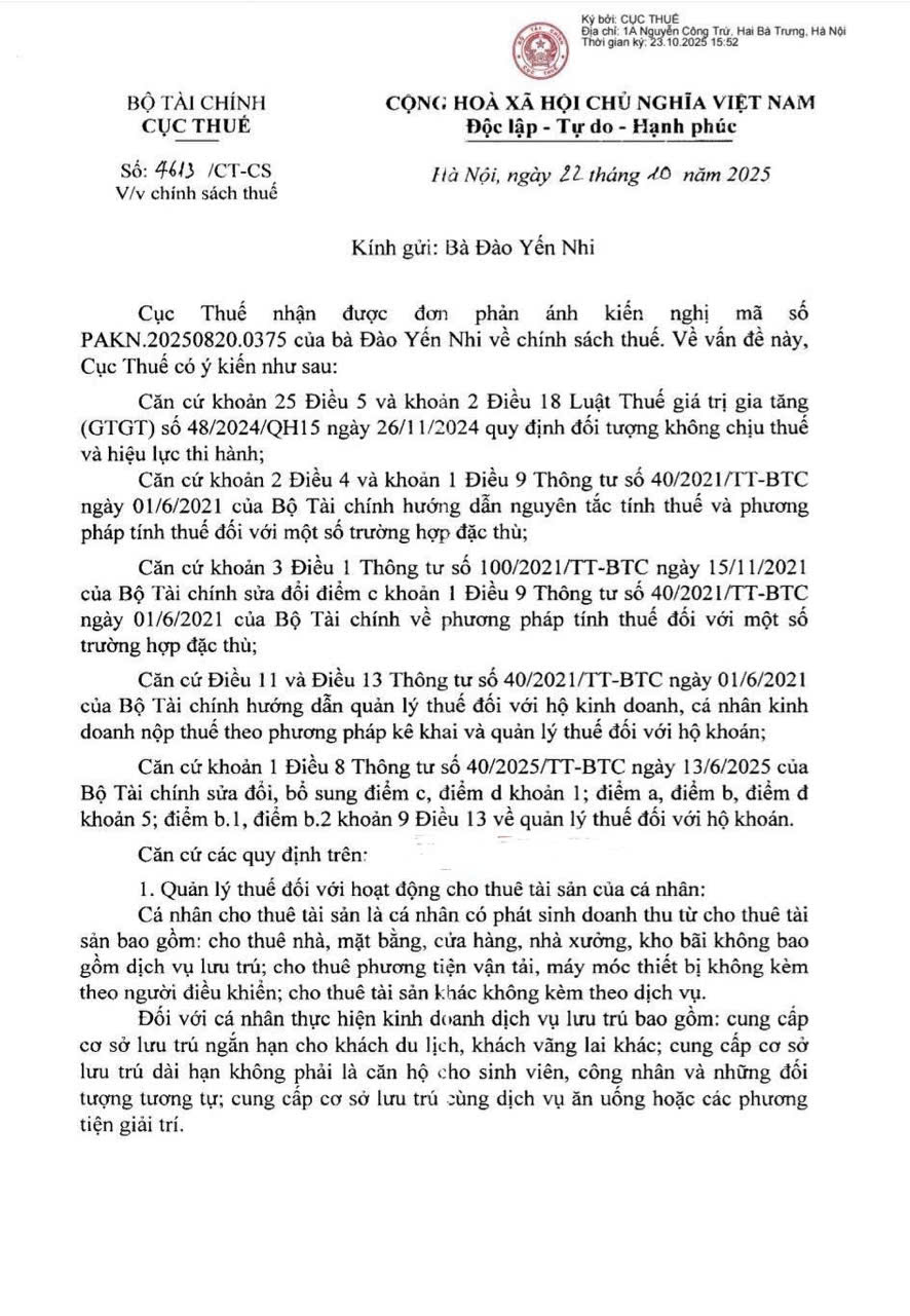 – Cá nhân có tổng doanh thu cho thuê tài sản từ 100 triệu đồng/năm trở xuống (tính đến 31/12/2025).