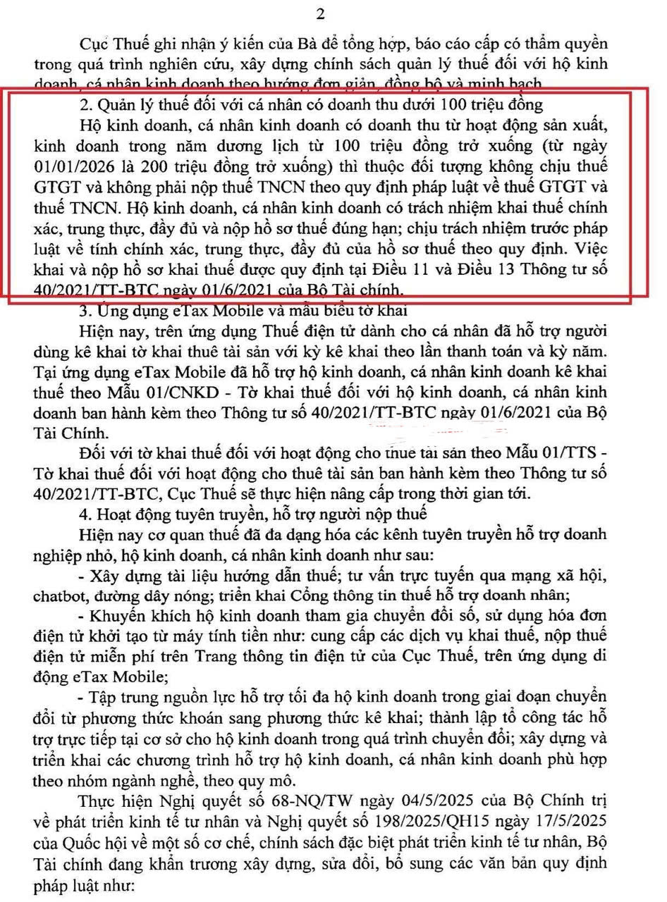 – Từ 01/01/2026, mức miễn thuế được nâng lên từ 200 triệu đồng/năm trở xuống.