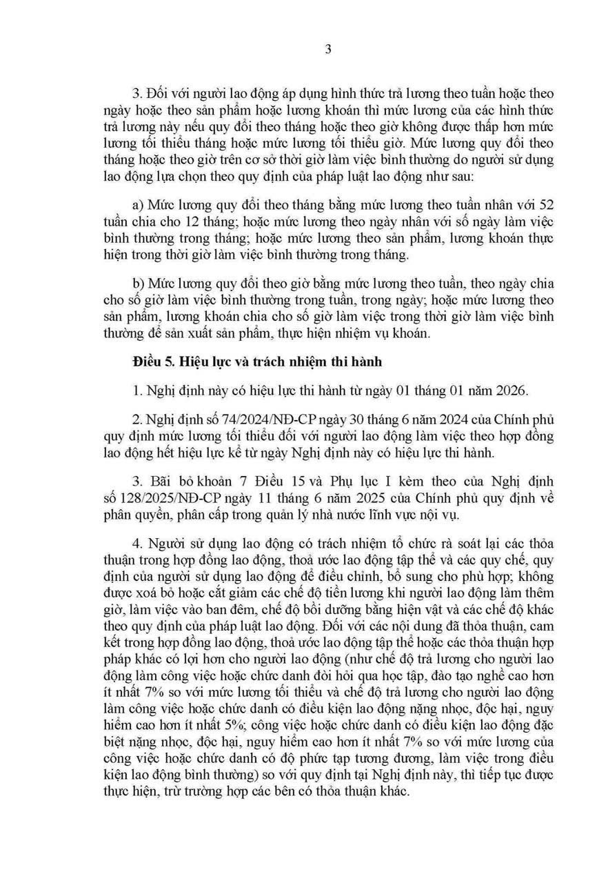 Nghị định 293/2025/NĐ-CP quy định mức lương tối thiểu vùng năm 2026 cho người lao động. Nghị định 293/2025/NĐ-CP có hiệu lực từ ngày 01 tháng 01 năm 2026.
