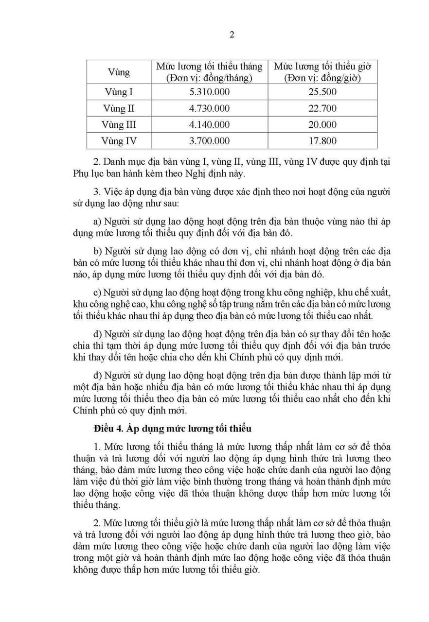 Theo đó, tại Nghị định 293/2025/NĐ-CP quyết định chính thức tăng mức lương tối thiểu vùng năm 2026, với mức lương tối thiểu vùng mới được quy định tại Điều 3 Nghị định 293/2025/NĐ-CP như sau: